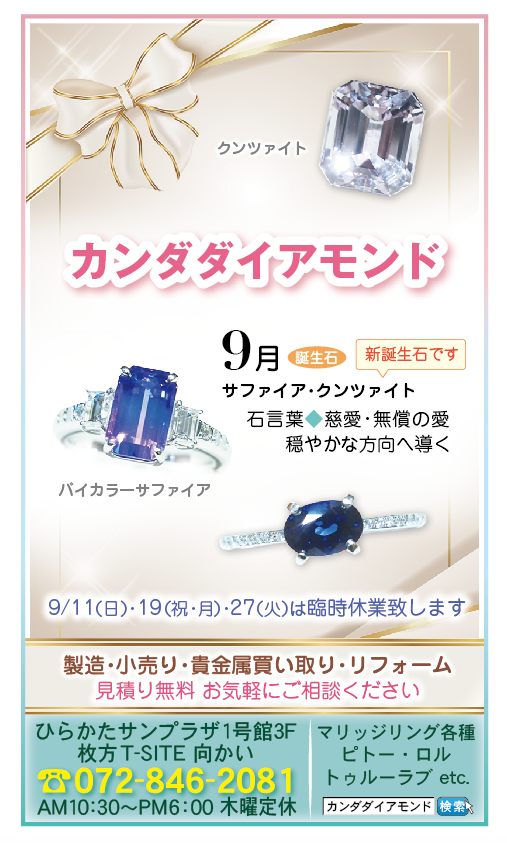 またクンツァイトは今年63年ぶりに改訂され、新しく9月の誕生石となりました。